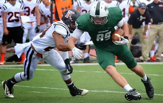 • The Warriors answered on their next possession with a six-play, 80-yard drive that ended with a 23-yard Theo Belhomme (Kissimmee, Fla./Gateway) catch from Gino DeGeorge (Las Vegas, Nev./Faith Lutheran) to tie the game at 6-6 after a missed extra point.